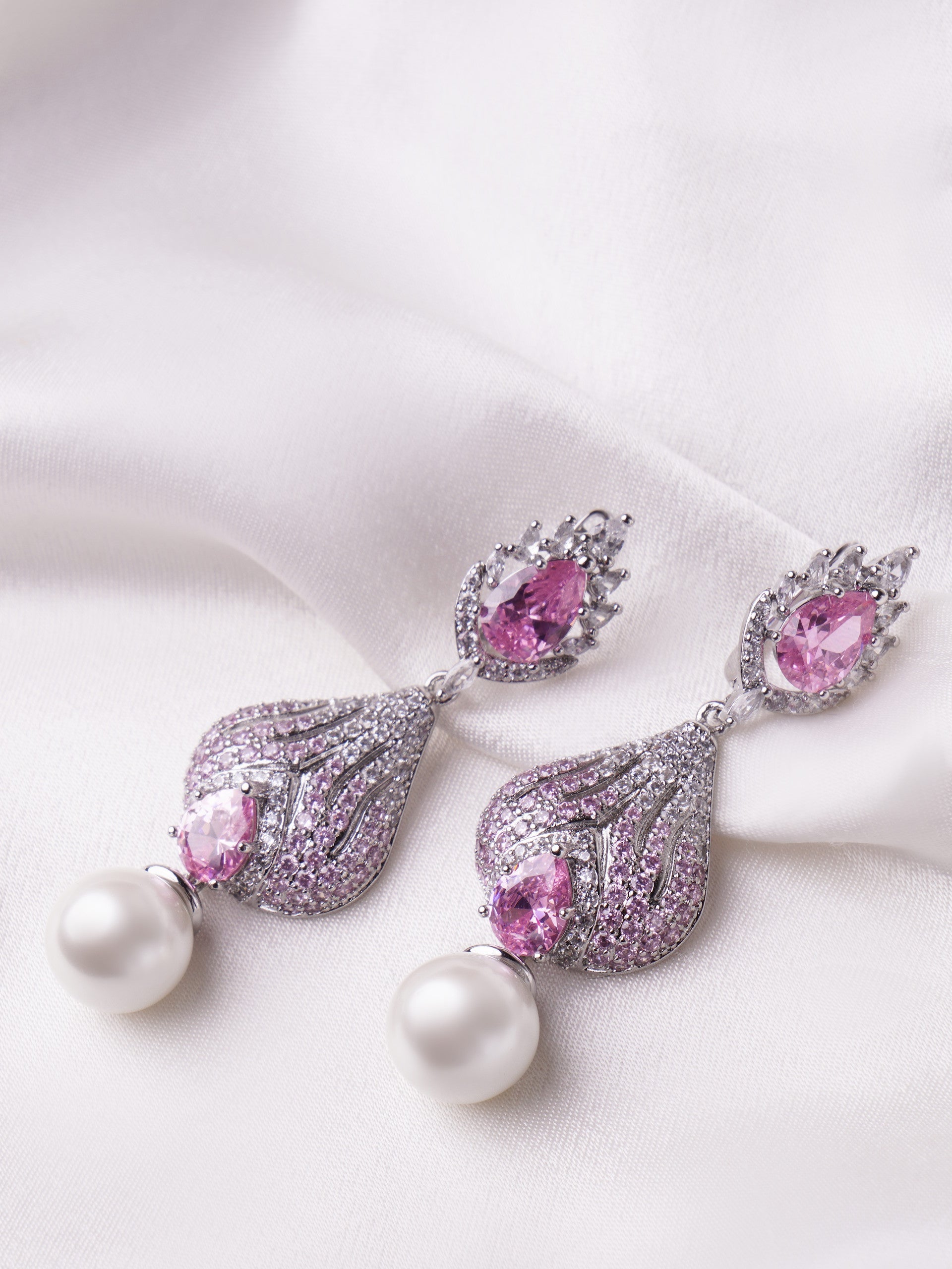 Delicately crafted, the Buddha Earring showcases a stunning pink cubic zirconia stone paired with an elegant pearl drop, creating a harmonious blend of color and sophistication. This unique design adds a graceful touch to any outfit, perfect for enhancing your everyday style with a subtle yet charming sparkle.