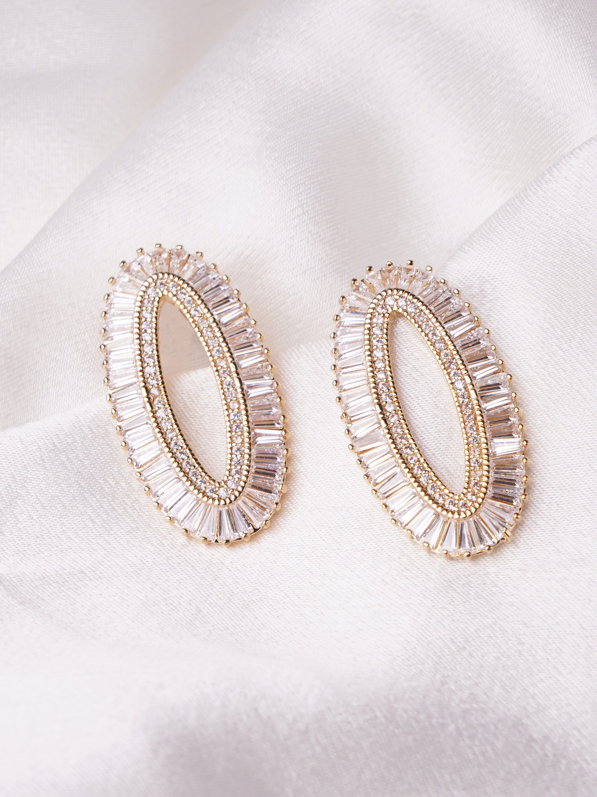 The Echo Earring features a striking geometric design, fully adorned with sparkling zircon stones. Its refined shape adds a modern edge while the shimmering stones catch the light beautifully, offering an elegant touch for any occasion. Comfortable to wear, this earring effortlessly enhances your style with a polished, radiant finish.