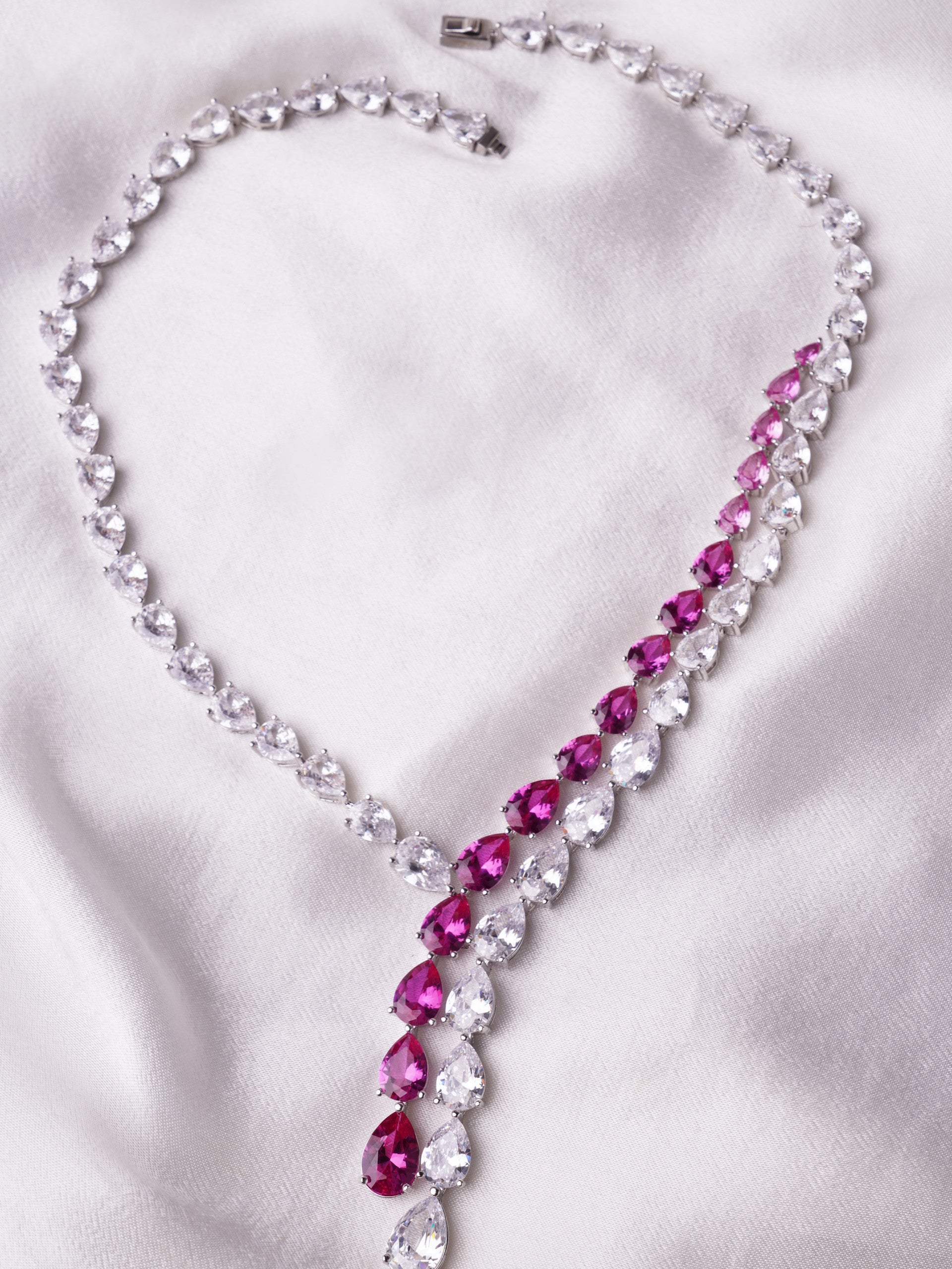Add a delicate touch to your style with the Rose Teardrop Set, featuring pink and glossy zircon stones. This elegant set includes a necklace & earrings, and bracelet designed to bring a soft, radiant glow to any outfit. Perfect for elevating your look with subtle sophistication on any occasion.